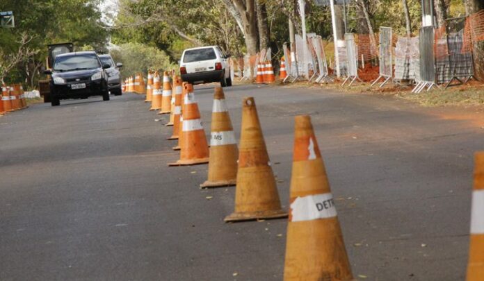 Os veículos dividem apenas uma pista da Avenida do Poeta, entre a rotatória da Agência Estadual de Gestão de Empreendimentos (Agesul) e o Posto do Parque. Neste trecho, duas obras estão sendo executadas: o recapeamento de uma das vias da Avenida do Poeta, entre a rotatória da Agesul e a rotatória do Condomínio Beirute, e as intervenções na nascente do Córrego Joaquim Português, entre a rotatória do Condomínio Beirute e o Posto do Parque.