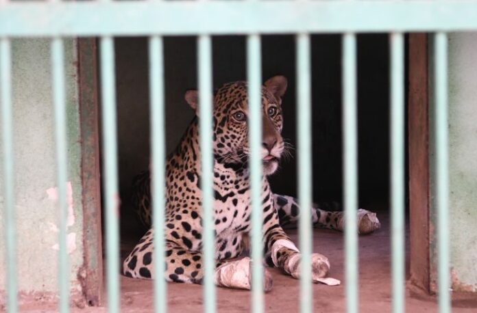 Onça chega ao Hospital Ayty para tratamento e esturro é o 1º sinal positivo do animal