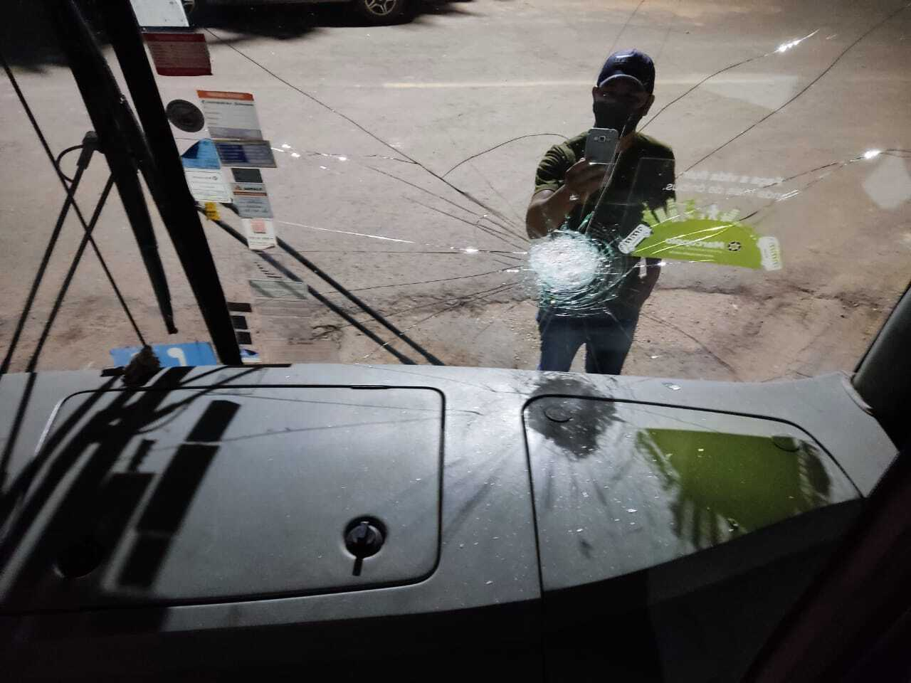 Ônibus com 28 passageiros sofre ataque a pedradas e uma pessoa fica ferida