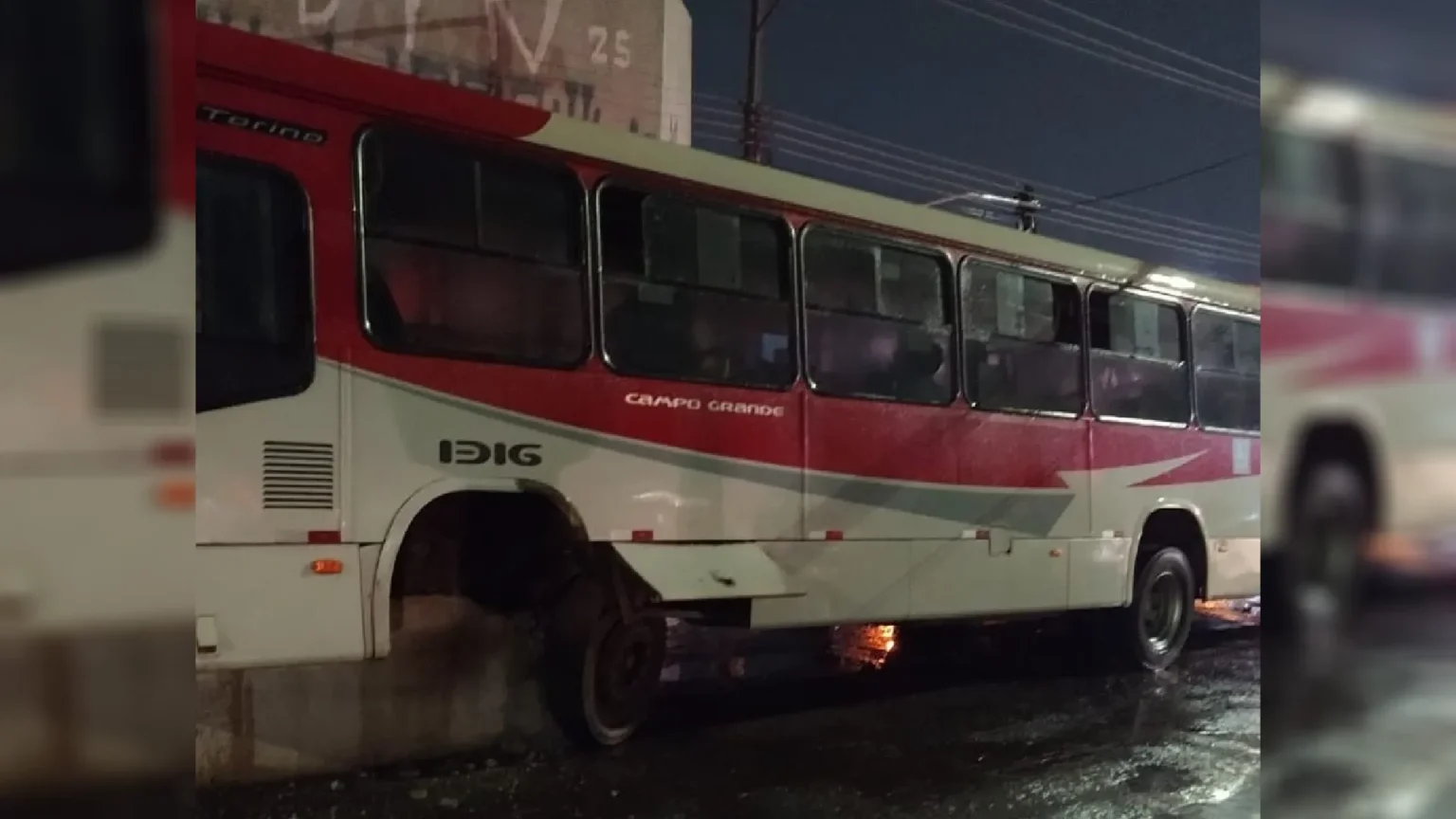 Ônibus do Consórcio Guaicurus vai parar sobre a mureta de concreto e deixa sete passageiros feridos