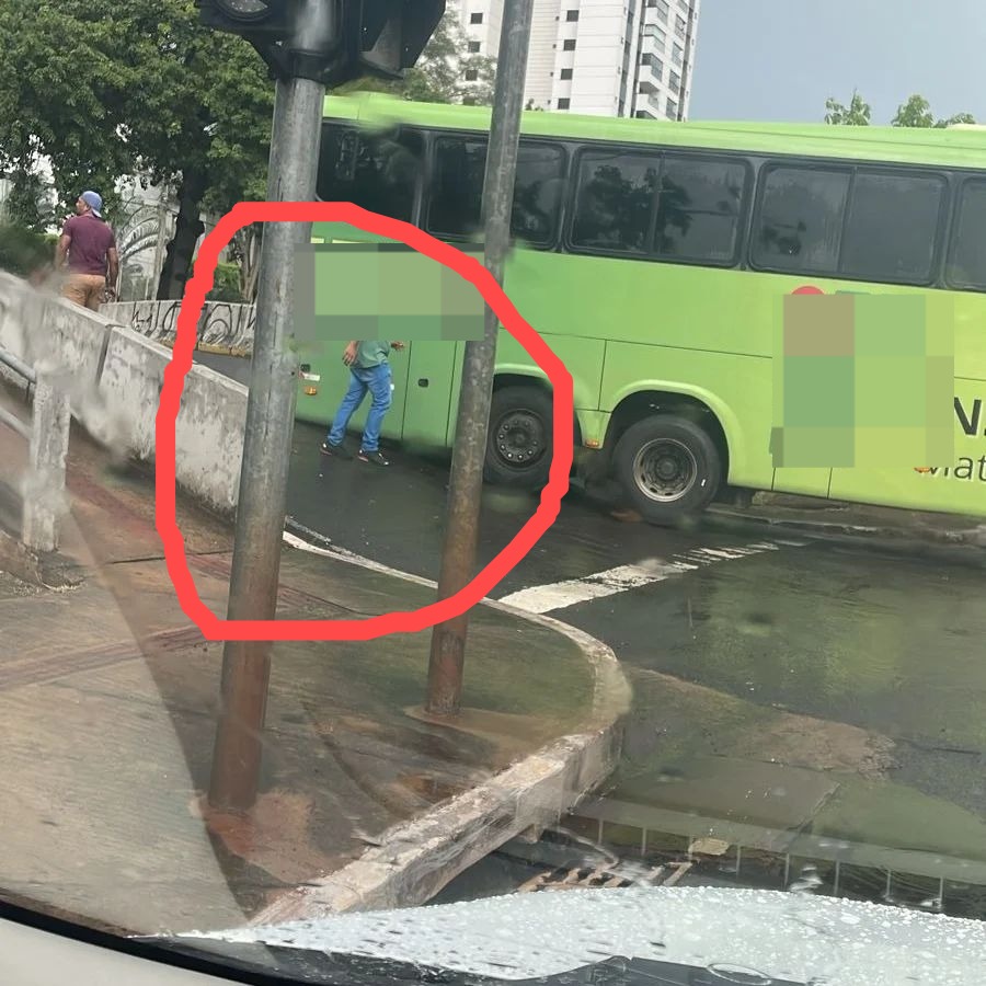 Um ônibus acabou ficando encavalado (preso) no início da tarde dessa quarta-feira (20), em Campo Grande, ao passar por uma ponte sobre o Córrego Prosa.