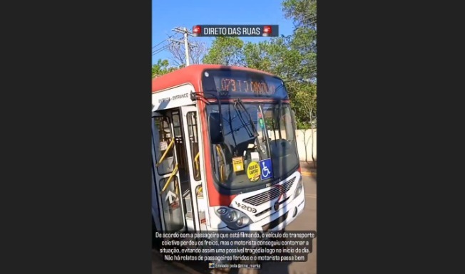 Um ônibus do Consórcio Guaicurus ficou sem freio enquanto descia a movimentada Avenida Mascarenhas de Moraes, no bairro Monte Castelo, na manhã desta sexta-feira (16).