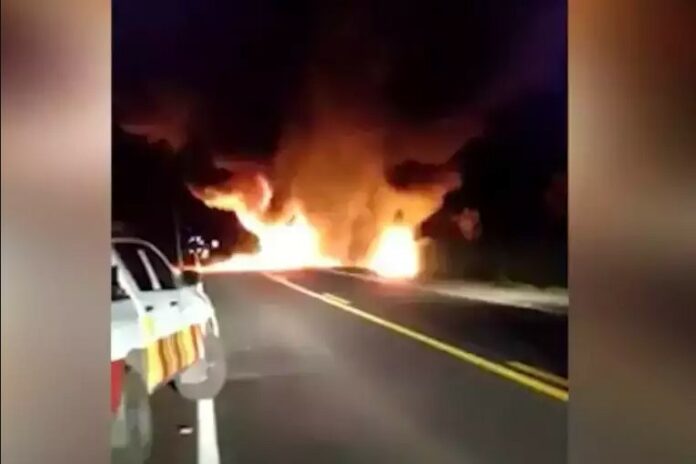 O ônibus pegou fogo na BR-163, estavam a bordo 40 passageiros, com o itinerário de Nova Alvorada do Sul para Campo Grande. Ninguém ficou ferido, pois conseguiram sair a tempo.