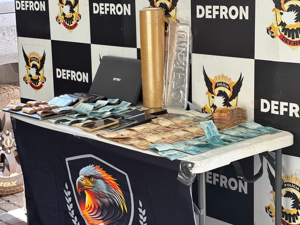 Uma operação desencadeada pela Defron (Delegacia Especializada de Repressão aos Crimes de Fronteira) resultou na apreensão de 12 celulares, R$ 48 mil em espécie e uma caminhonete. Durante a investida, uma pessoa foi presa em flagrante por posse de arma de fogo de uso permitido.