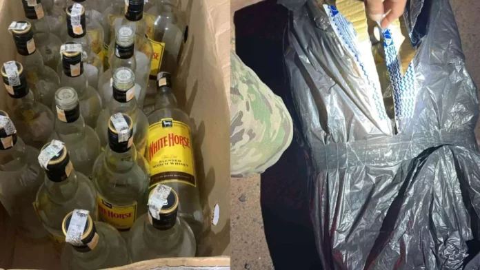 De acordo com a Polícia Civil, equipes do Garras (Delegacia Especializada de Repressão a Roubos a Banco, Assaltos e Sequestros) abordaram o caminhão e encontraram cerca de 900 quilos de garrafas de uísque White Horse vazias, totalizando 2.016 recipientes distribuídos em 84 caixas. O material estava escondido entre uma carga diversificada, posicionado na parte frontal do baú para dificultar a localização.