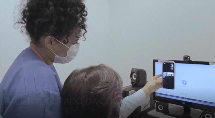 Equipe médica em videochamada com paciente curado. Reprodução