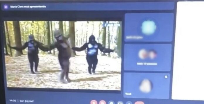 Um vídeo enviado ao g1 mostra o momento em que falas de um homem, risadas, sons de macacos e uma música atrapalharam a live .