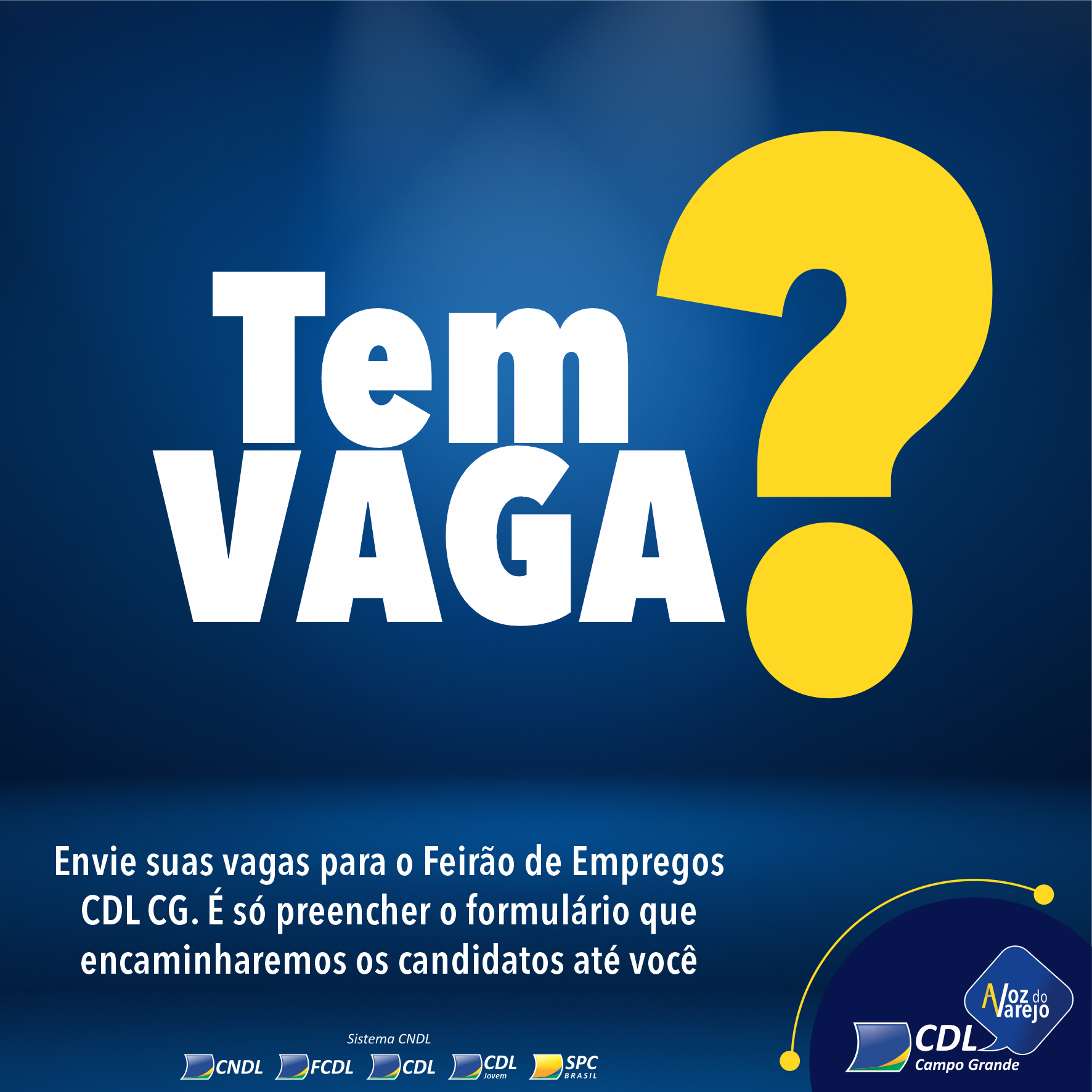 Feirão de Empregos será na quarta-feira (17), na CDL CG – Rua Antônio Correa, 417 – Monte Líbano.