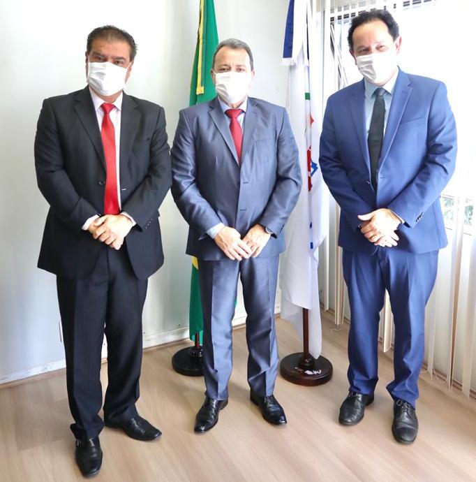 Senador de MS Nelson Trad; o Presidente da Funasa Coronel Giovanne Gomes da Silva; e o Diretor-Presidente da Sanesul Walter Carneiro Jr.