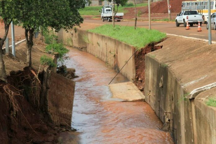Após episódios de chuva em Campo Grande, durante esta semana e ainda com a última registrada na tarde desta quinta-feira (27), a estrutura do Córrego segredo, localizado na Avenida Ernesto Geisel, voltou a cair nesta sexta (28), deixando parte da via interditada.