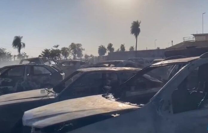 Pátio de leiloeira é atingido por incêndio de matagal e 21 veículos ficam destruídos