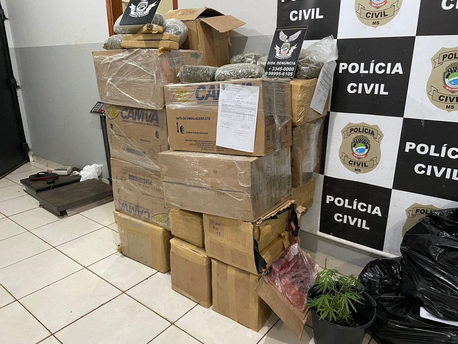A PC-MS (Polícia Civil do Mato Grosso do Sul), por intermédio da Denar (Delegacia Especializada de Repressão ao Narcotráfico) realizou a prisão, em flagrante, de três homens, além de apreender um veículo, carretinha e grande quantidade de maconha em seu interior e no imóvel pelo qual o trio era responsável. A ação ocorreu na tarde desta quarta-feira (15), durante investigação oriunda da Operação Ômega, realizada em caráter permanente pela Denar.