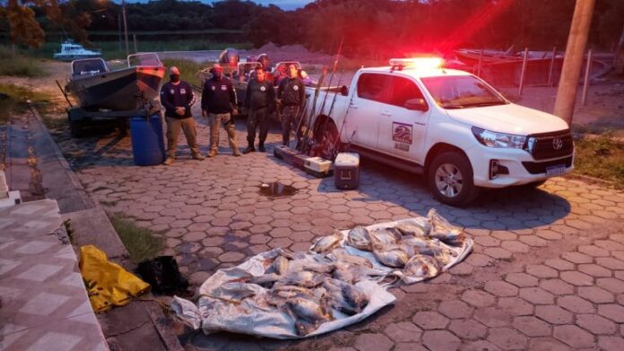 Além de embarcações e petrechos de pesca, os policiais e fiscais também apreenderam uma arma de fogo, sendo que o portador fugiu no momento em que se tentava a abordagem.