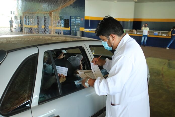 É preciso levar documento com foto, CPF e comprovante de residência para se vacinar. No sistema drive-thru, a exposição da pessoa a ser imunizada é menor.