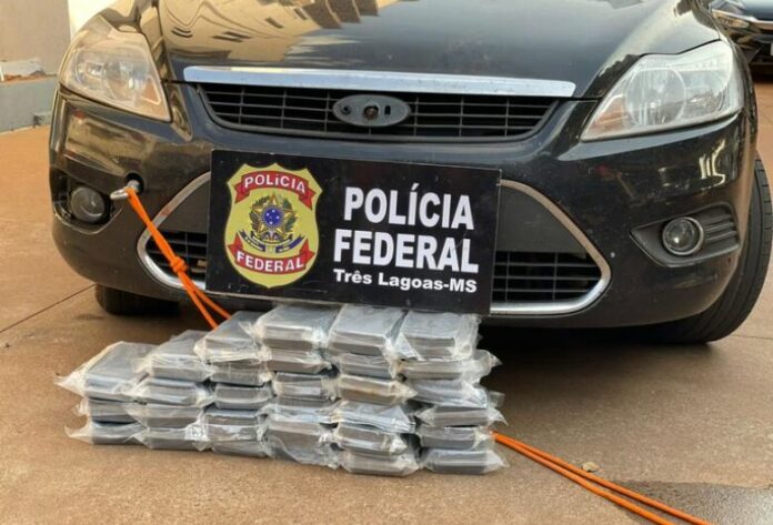 Policiais federais apreenderam 32 quilos de cocaína na sexta-feira (09) em Três Lagoas. A droga estava escondida no tanque de combustível de um veículo, que era ocupado por um casal.