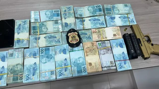 Policiais federais apreenderam neste sábado (03), em Campo Grande e na cidade de Medianeira (PR), R$ 194.300 em espécie e mais uma pistola da marca Glock e calibre 9 mm, equipada com kit para disparos de rajada.