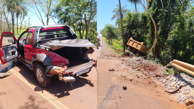 Devido ao impacto da batida, a picape acabou rodopiando na pista e batendo contra o guard-rail, até parar no meio da rodovia com a frente e a traseira destruídos. Já o caminhão, rompeu a proteção da via e parou em um barranco.