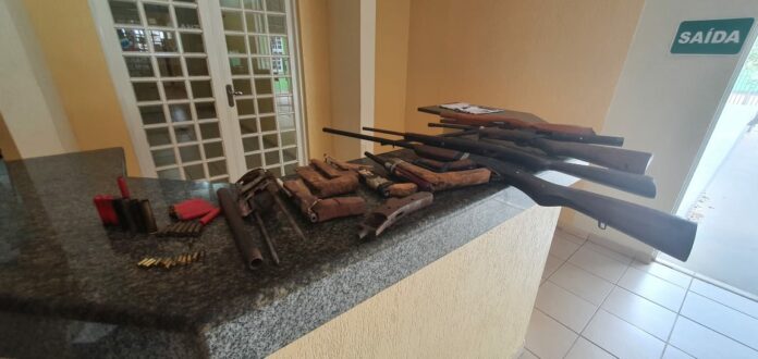 A Polícia Militar apreendeu na manhã deste sábado (24) um arsenal de espingardas e armas em uma oficina clandestina, na Vila Marina, em Coxim. Um idoso de 77 anos foi preso.