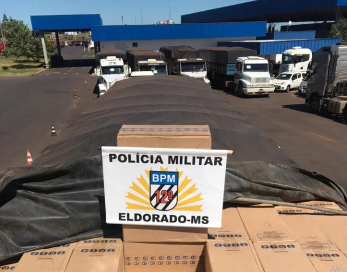 A Polícia Militar (PM) apreendeu hoje (27), uma carreta com 45 mil pacotes de cigarros contrabandeados, quando passava por um desvio do perímetro urbano da cidade de Eldorado, na MS-295. O motorista conseguiu fugir.
