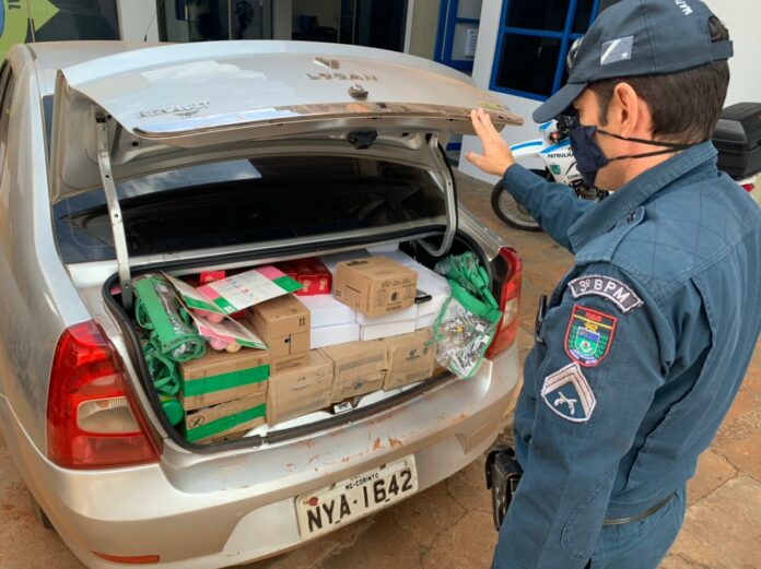 Segundo nota da assessoria da PM, a abordagem ocorreu em uma estrada vicinal na região do Porto do Jatai no distrito de Panambi. Um motorista, de 53 anos, residente na cidade de Belo Horizonte (MG) foi flagrado com uma grande quantidade de produtos trazidos do Paraguai, no interior de um veículo Renault Logan de cor prata com placas do estado de Minas Gerais.