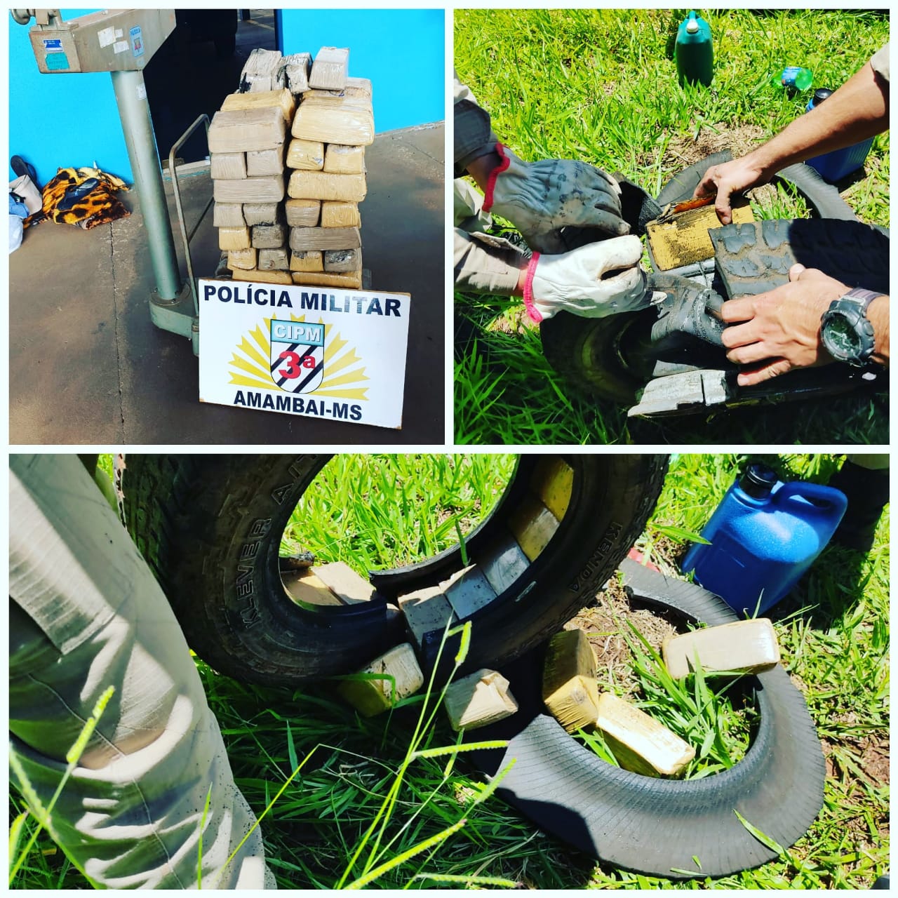 Na tarde de ontem (26) uma equipe de Rádio Patrulha da Polícia Militar de Amambai prendeu três pessoas que transportavam maconha dentro dos pneus do veículo que usavam.