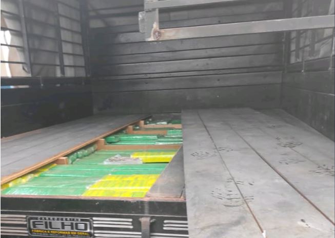 No entanto, após busca minuciosa, os policiais militares encontraram um fundo falso sob o assoalho de madeira da carroceira, onde estavam escondidos o entorpecente.