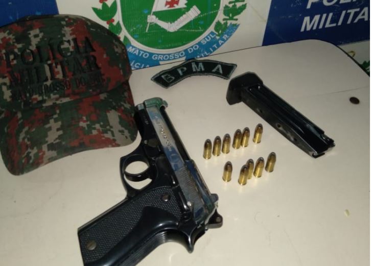 A arma e munições não possuíam documentos e foram apreendidas, juntamente com o veículo. O homem mais velho assumiu ser dono da pistola.