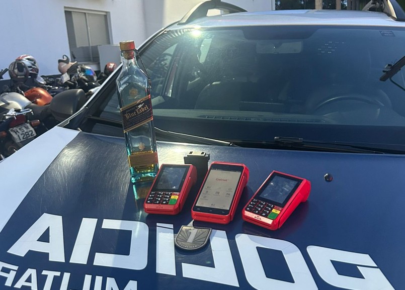 Quando os militares chegaram ao posto, o suspeito já havia deixado o local. Com base nas características informadas, os policiais iniciaram diligências pela região central e conseguiram localizar o jovem na Avenida Afonso Pena, no cruzamento com a Rua 14 de Julho, nas proximidades da Praça Ary Coelho. Durante a abordagem, ele estava com as máquinas de pagamento e uma garrafa de uísque.