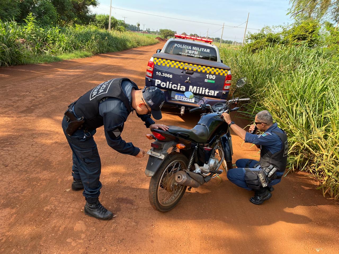 Uma equipe da Polícia Militar, em Dourados, recuperou uma motocicleta roubada nesta madrugada, na BR-463. A moto estava escondida em um matagal.