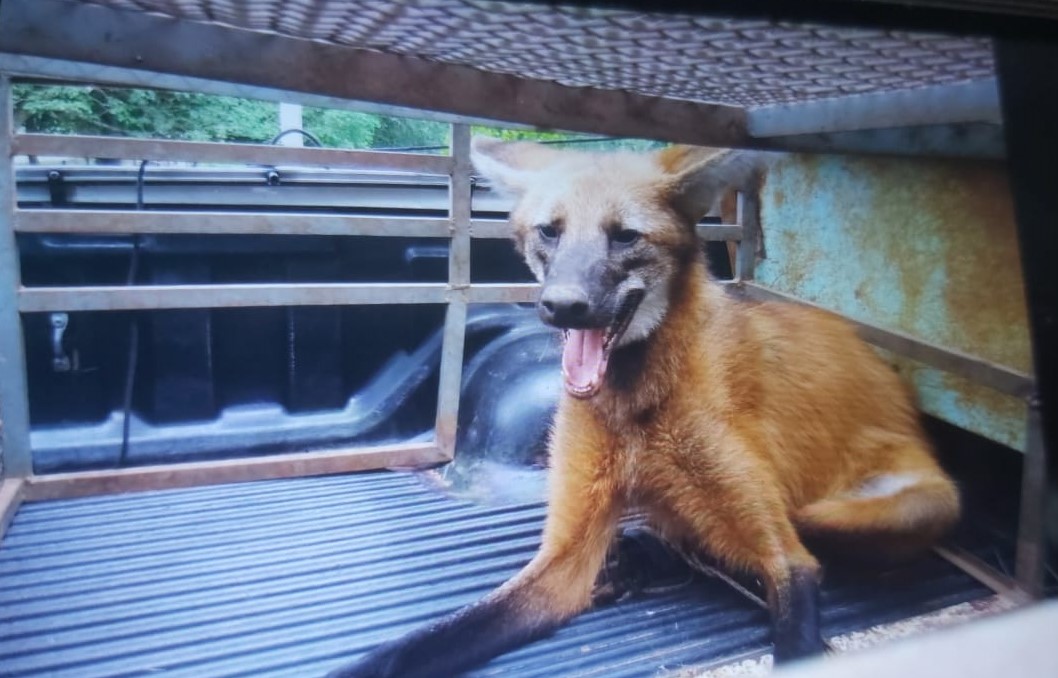 Policiais Militares Ambientais de Bela Vista foram acionados hoje (31) às 7h00 por um morador do bairro Nova Bela Vista na cidade, devido a presença de um animal da espécie Chrysocyon brachyurus, conhecido como lobo-guará, que estava no quintal de sua residência e não conseguia sair.
