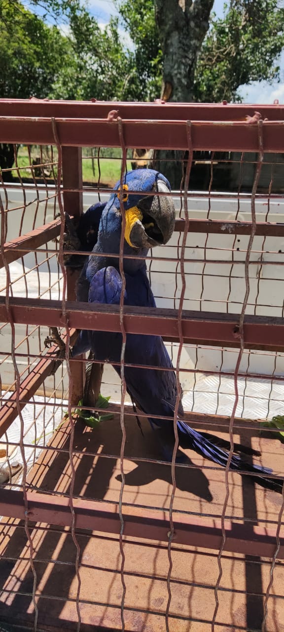 O proprietário de uma fazenda, localizada a 27 km da cidade, telefonou à Polícia Militar Ambiental de Bonito hoje (18) no meio da manhã, informando que um animal da espécie Anodorhynchus hyacinthinus (Arara-azul-grande) encontrava-se ferido nas proximidades da sede da propriedade.