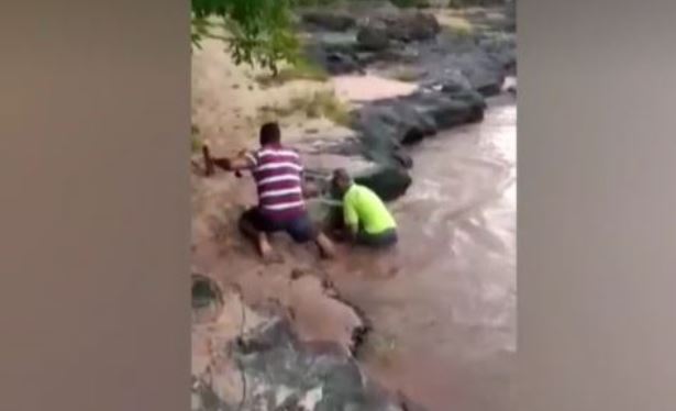 No vídeo, os homens capturam um peixe da espécie jaú e um outro filma a pescaria.