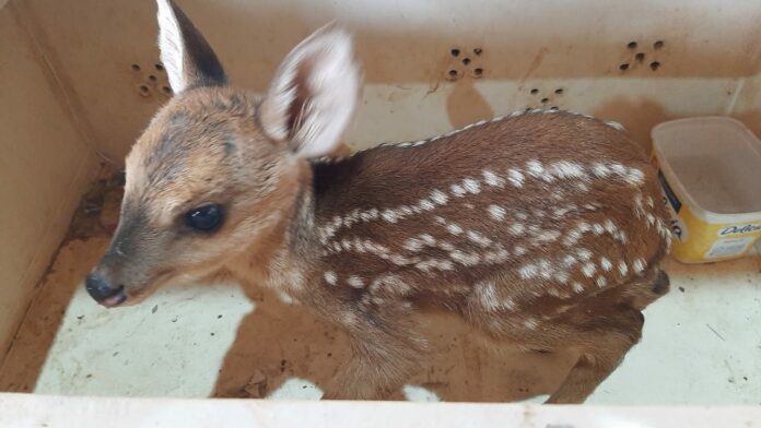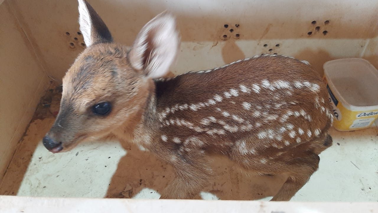 Um filhote de animal silvestre da espécie Mazama gouazoubira (veado-catingueiro) foi capturado no final da manhã de hoje (27), por policiais militares ambientais de Jardim.
