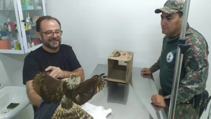 O profissional examinou o gavião e não encontrou nenhum tipo de ferimento. Depois de receberem o laudo veterinário, os policiais soltaram a ave na zona rural, distante da cidade.