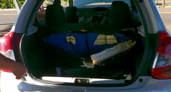 Em uma vistoria, foi de imediato encontrado pelos policiais 58 quilos do entorpecente que estava oculto dentro do banco traseiro e lateral traseira.
