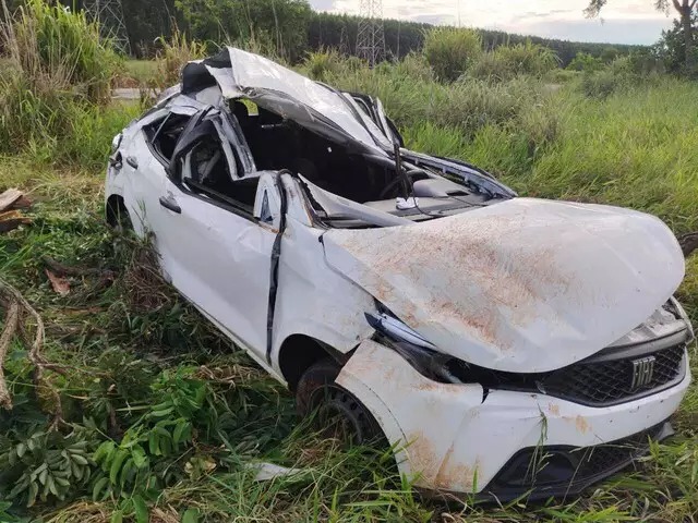 Na sequência, o automóvel saiu da pista e capotou várias vezes até parar no meio da vegetação às margens da pista, completamente destruído.