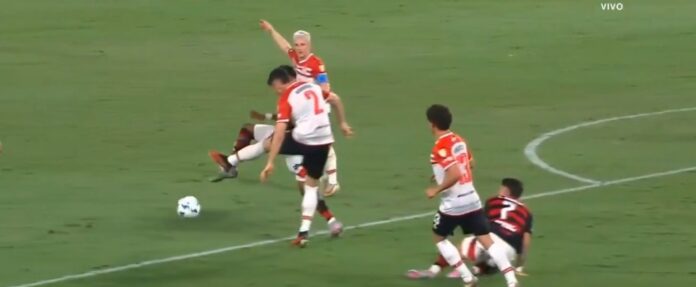 O lance em questão ocorreu aos 38 minutos do segundo tempo, quando Plata recebeu o segundo cartão amarelo em disputa com Facundo Rodríguez. O equatoriano chegou antes e foi acertado pelo zagueiro argentino, mas o árbitro Andres Rojas, da Colômbia, entendeu que a falta foi do jogador rubro-negro, aplicou a falta e a advertência.