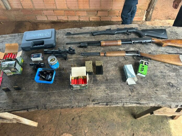 Um grande arsenal foi apreendido pela Polícia Civil, em Sidrolândia, na manhã dessa sexta-feira (22) durante o cumprimento de dois mandados de busca e apreensão contra um homem investigado por violência doméstica a ameaça.