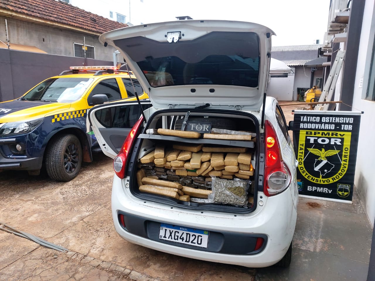 O flagrante aconteceu após policiais do TOR/PMR (Tático Ostensivo Rodoviário da Polícia Militar Rodoviária) deram ordem de parada a condutora de um veículo modelo Fiat Palio, de cor branca. A condutora fugiu.