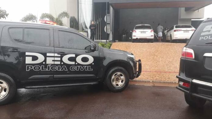 Policiais civis da Dracco (Departamento de Repressão à Corrupção e ao Crime Organizado) de Mato Grosso do Sul cumprem mandado de busca e apreensão na casa de um homem, localizado no Residencial Ecoville 2, em Dourados.