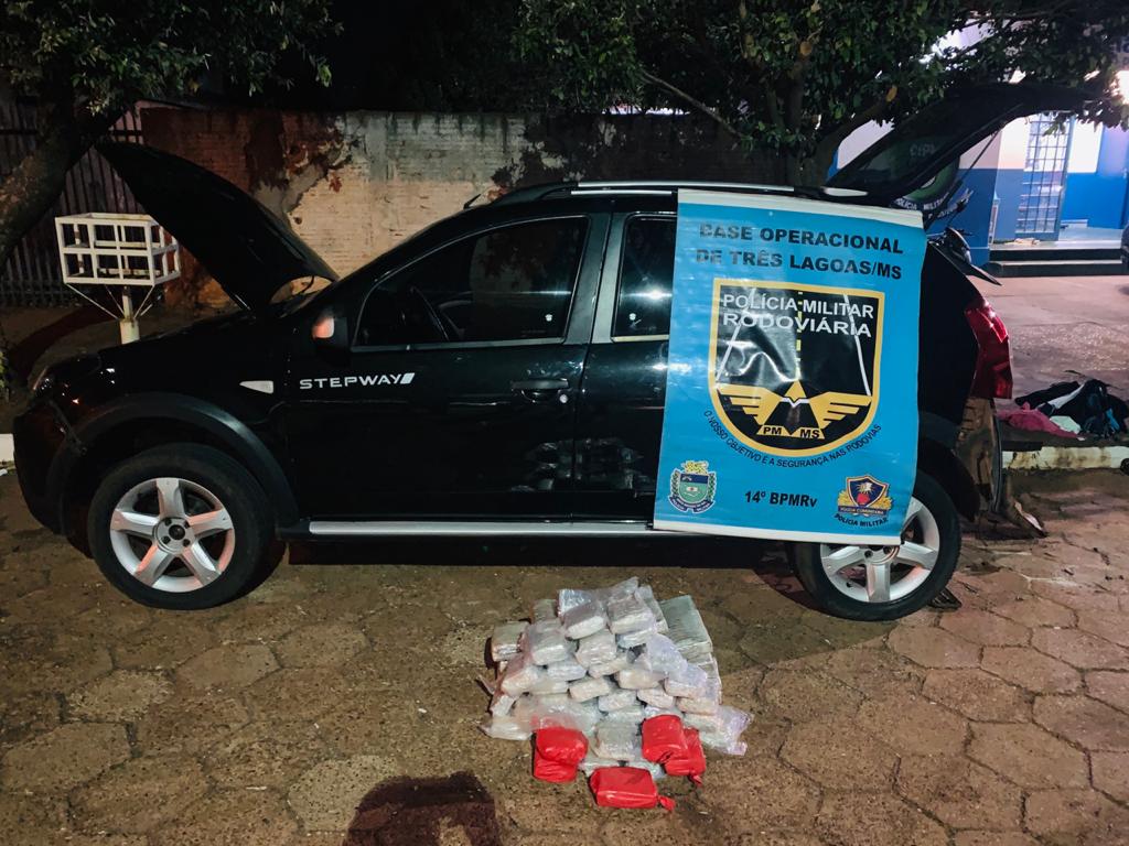 O fato ocorreu enquanto a equipe da Polícia Militar Rodoviária trafegava pela BR 267 e visualizou o veículo Renault/Sandero, com placas de Naviraí – MS, em atitude suspeita. Durante entrevista com o condutor, um homem de 45 anos, foi percebido diversas contradições, que fizeram com que os policiais iniciassem uma busca minuciosa no veículo. Eles encontraram dentro dos para-choques e dentro do tanque de combustível, vários tabletes e pacotes de drogas. Ao todo, 35 kg de maconha e skank.