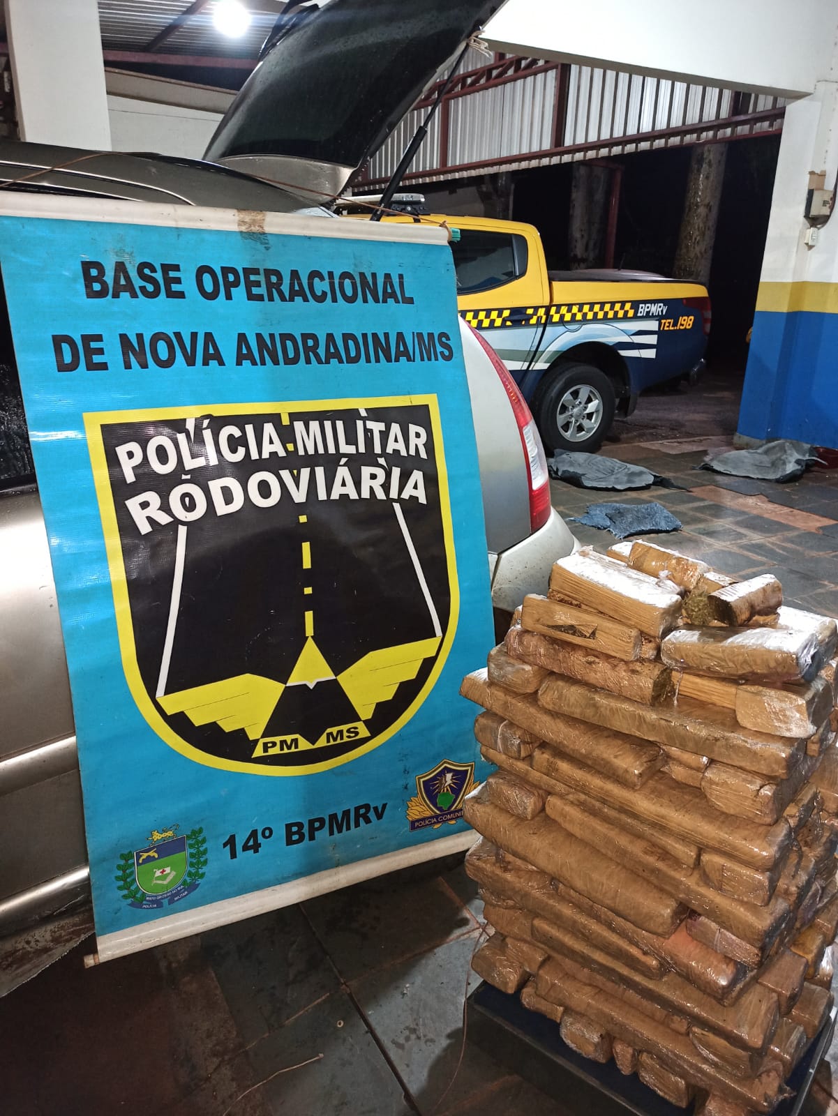 Por volta das 21h30 uma equipe da BPMR patrulhava na MS-134 quando se deparou com veículo suspeito. O carro de modelo Citroen C3, foi revistado após o condutar se apresentar excessivamente nervoso. Durante a busca foram encontradas escondidas no interior do assoalho do veículo, um total de 87 tabletes de maconha.