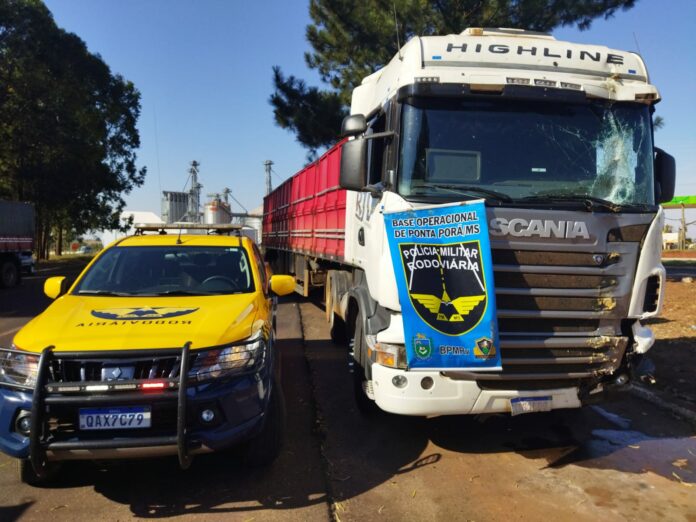 Momentos depois usuários da via informaram a equipe PMR que próximo do km 87 da rodovia MS 164, trafegava uma carreta com as características já informadas, que deslocava no sentido Fazenda Itamarati x Ponta Porã, e que seu condutor havia perdido o controle direcional do veículo saindo da pista e chocando-se contra uma árvore existente às margens da via.