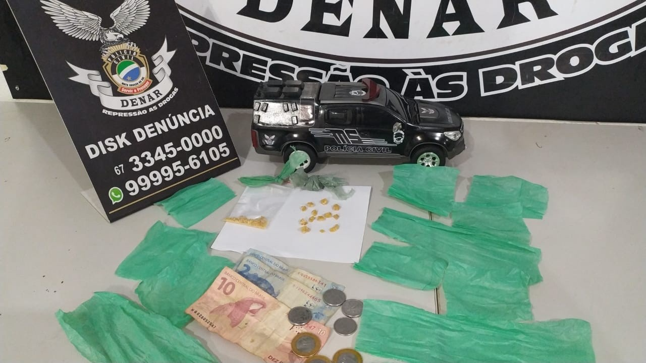 Diante do flagrante as equipes realizaram buscas no imóvel, onde encontraram mais um homem, escondendo drogas e dinheiro. Em checagem, foi constatado que o suspeito, possuía Mandado de Prisão em aberto, pelo crime de Tráfico de Drogas, com pena de 4 anos de prisão.