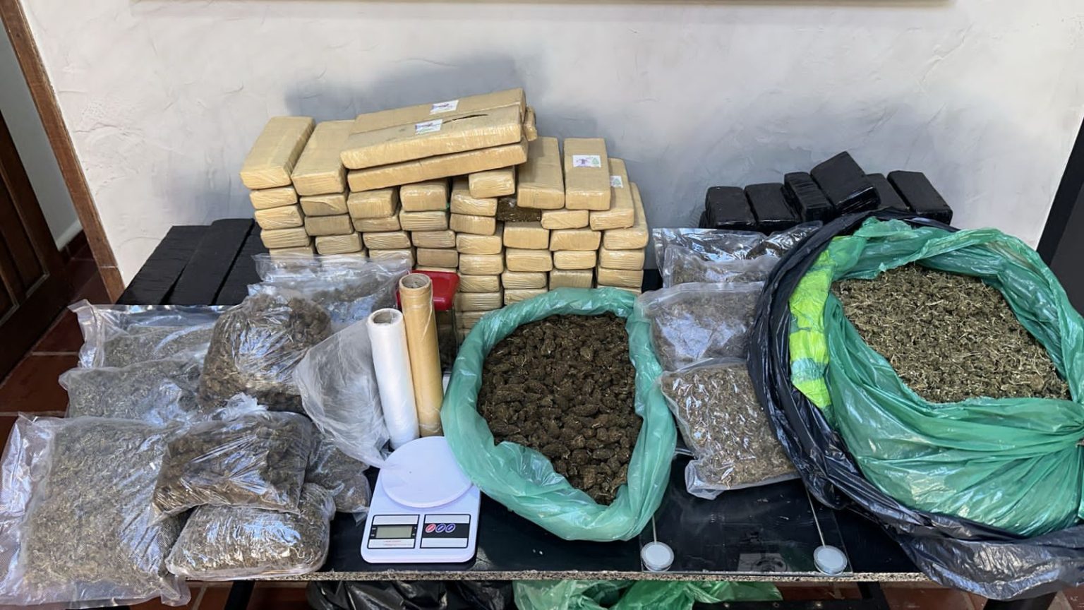 A droga, após pesada, totalizou mais de 78 quilos de maconha e bucha de maconha dividida em tabletes, pacotes e a granel.