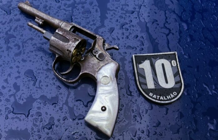 Com base nas informações repassadas, os policiais iniciaram buscas e localizaram o homem na Rua Braz Clementino Mendonça, próximo a um supermercado, com as mesmas características informadas. Durante a abordagem, foi encontrado um revólver calibre .32 na cintura do suspeito, contendo quatro munições — três intactas e uma picotada.