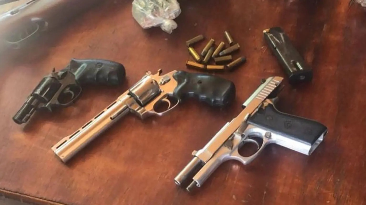 Os policiais foram com as duas suspeitas até o endereço e apreendeu dois revólveres .38, uma pistola .9mm, quatro munições calibre .9mm e 25 munições calibre .38. Além de 2,750 kg de maconha e sementes da droga já plantadas em garrafas pet.