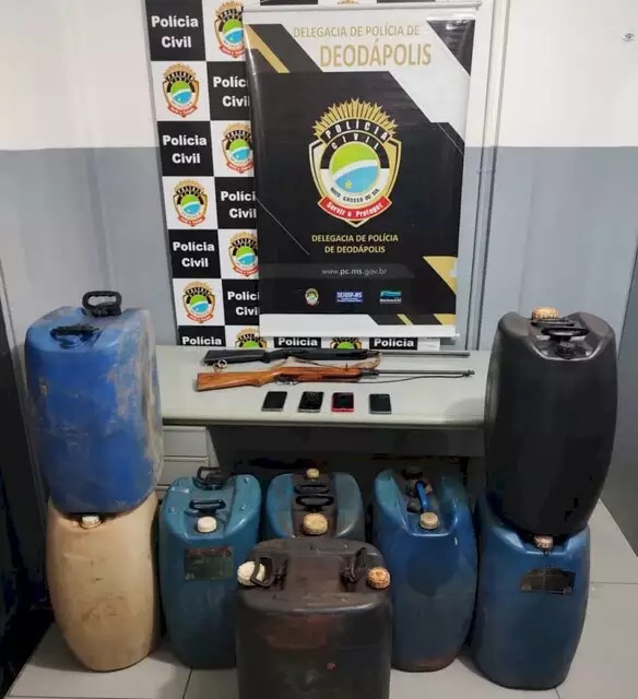 Uma operação da Polícia Civil em fazendas de Deodápolis e Glória de Dourados terminou na prisão de quatro pessoas e mais de mil litros de combustível apreendidos.