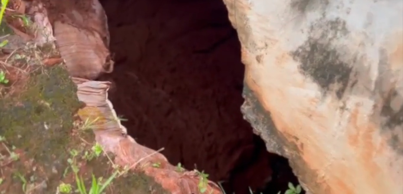 A Secretaria detalhou que, com a persistência das chuvas, houve um deslizamento de cotas superior para inferior, causando o afundamento do solo.