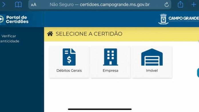 Quem precisa emitir certidões negativas de débitos, tanto para pessoas físicas, como para empresas, ou serviços imobiliários, não precisa mais sair de casa e nem pagar por isso. A Prefeitura de Campo Grande, por meio da Secretaria Municipal de Finanças e Planejamento, em parceria com a Agência Municipal de Tecnologia da Informação e Inovação, desenvolveu o “Portal de Certidões”, no qual serviços antes cobrados e prestados apenas presencialmente agora são gratuitos e on-line.